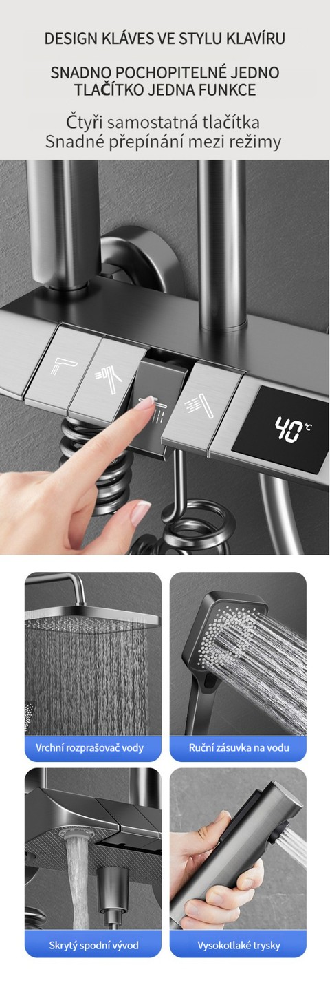 Sprchový set, digitální obrazovka, chytrý termostat, klavírní klávesy
